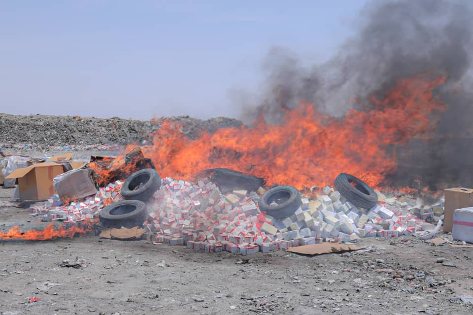 نيابة استئناف المهرة تتلف أطناناً من الأدوية المهربة