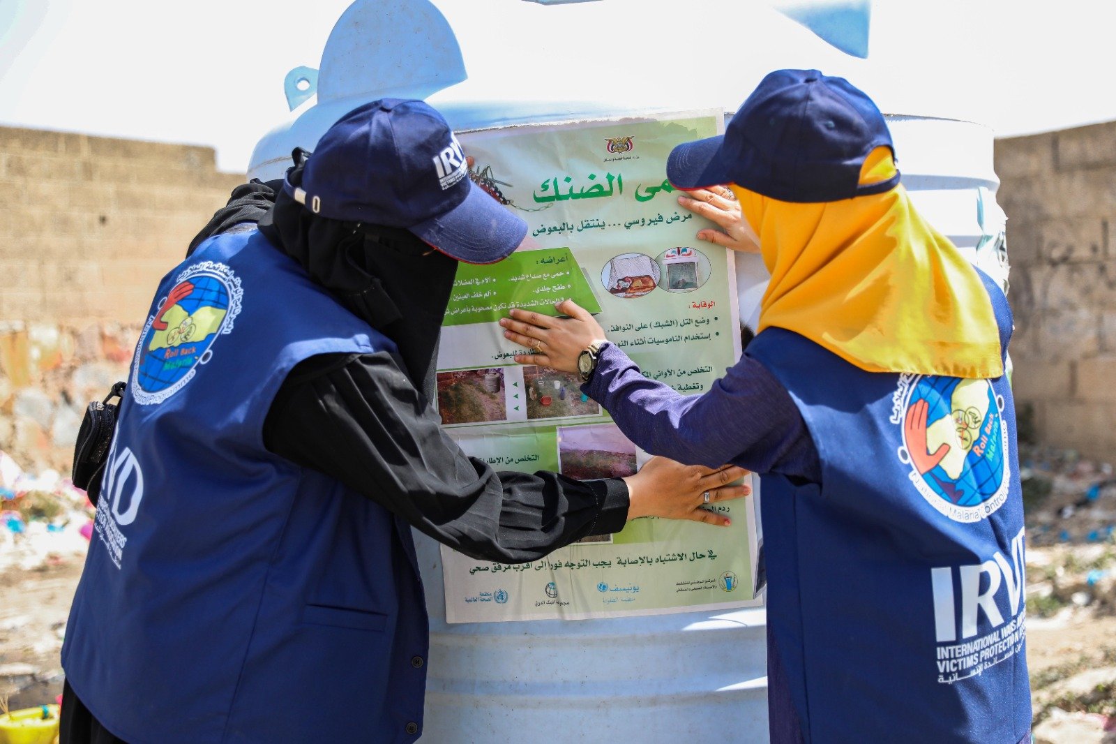 فرق الجمعية الدولية لرعاية ضحايا الحروب والكوارث تواصل حملات التوعية والتثقيف بحمى الضنك والملاريا