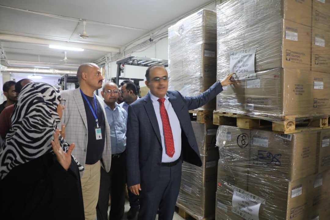 بحضور وزير الصحة وبدعم من مركز الملك سلمان الصحة تتسلم شحنة أدوية